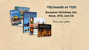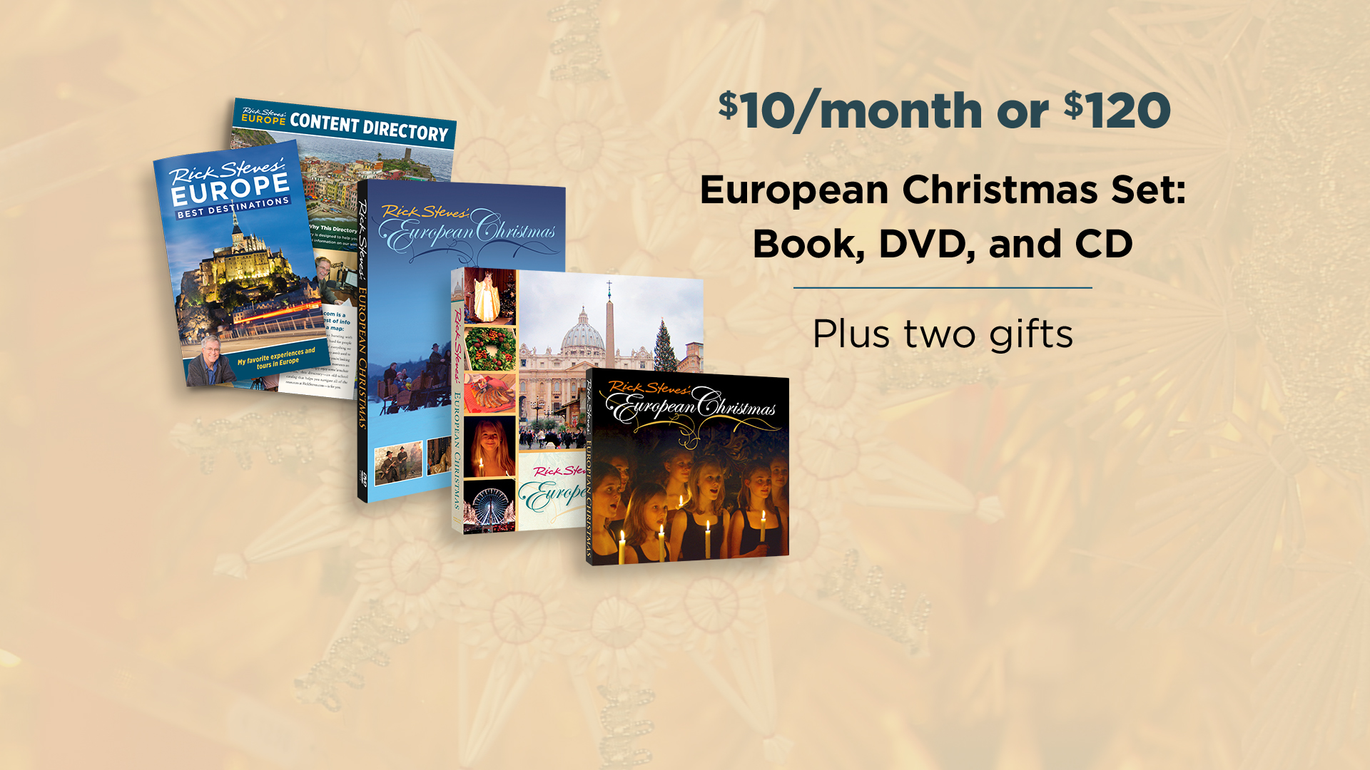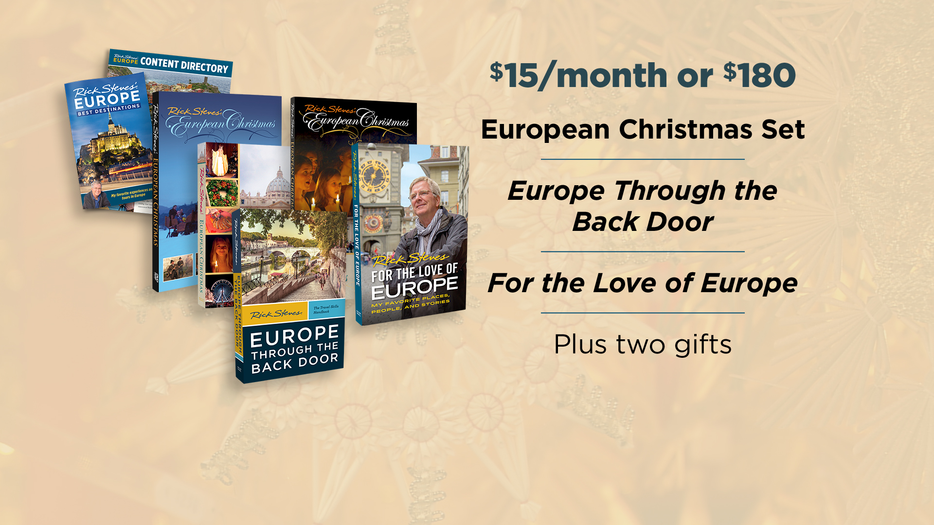 Hi, I'm Rick Steves and it's Christmas time in Europe. From manger scenes to mistletoe from Norway to Rome…we're celebrating all over the Continent. Buon Natale! Fröhliche Weihnachten! Joyeaux Noël! Merry Christmas! And thanks for joining us.