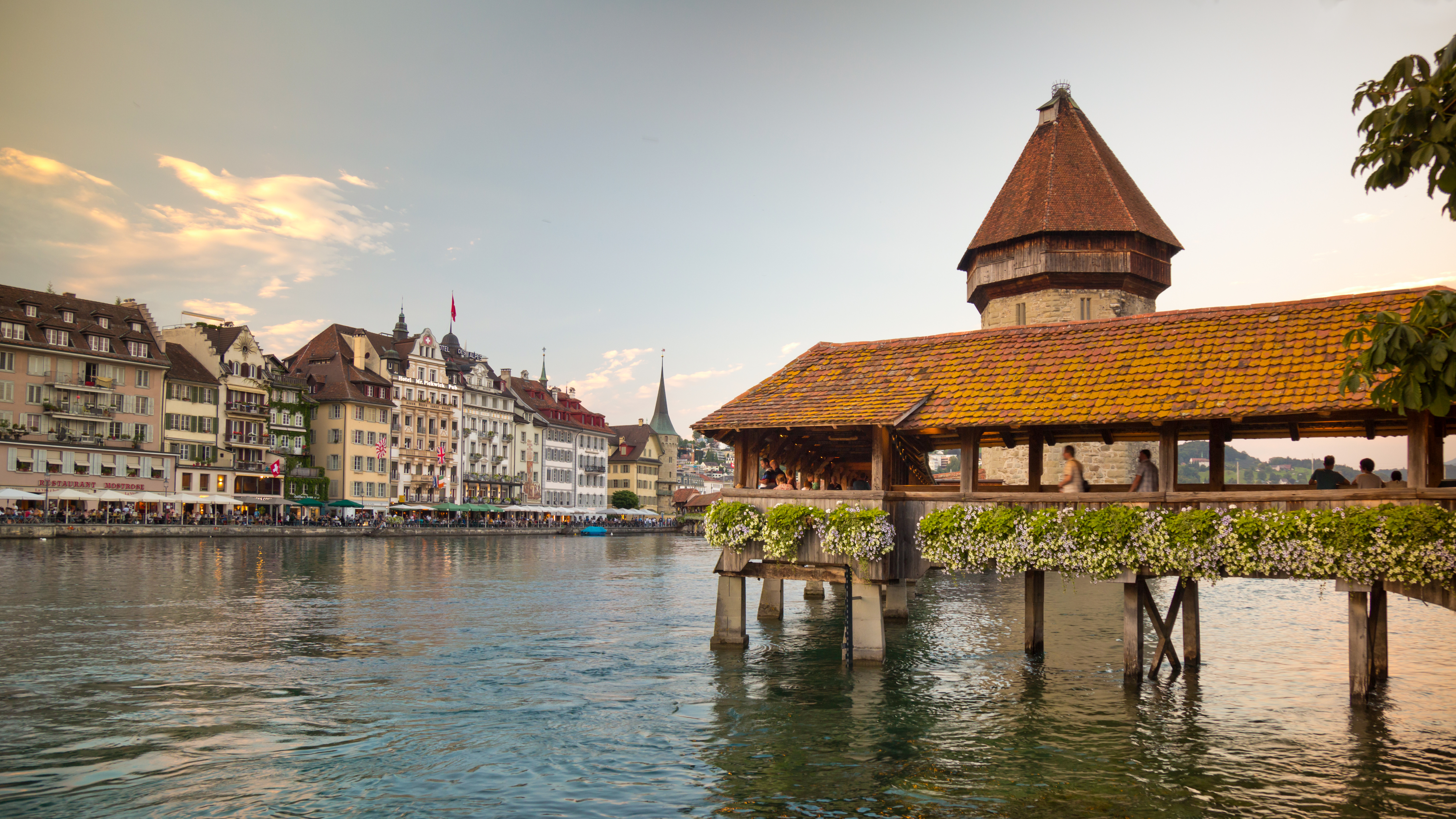 Luzern's 14th century Chapel Bridge zigzags its way across the Reuss River. (photo: Dominic Arizona Bonuccelli)